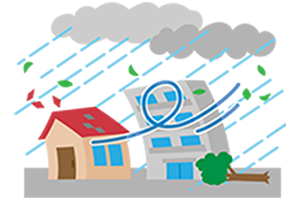 作業中に搬出物が倒れる、飛んでしまう程の強風、強雨、台風、竜巻など